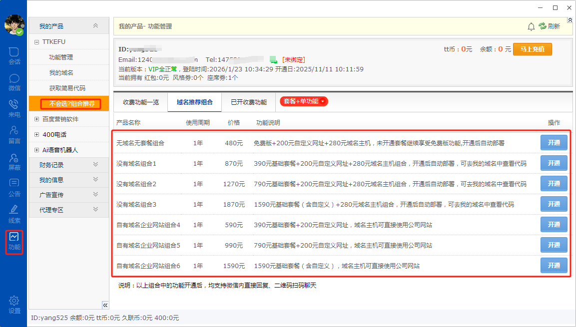 第一步:登陆账号-点击功能--点击不会选?组合推荐--选择您要开通的就可以了!